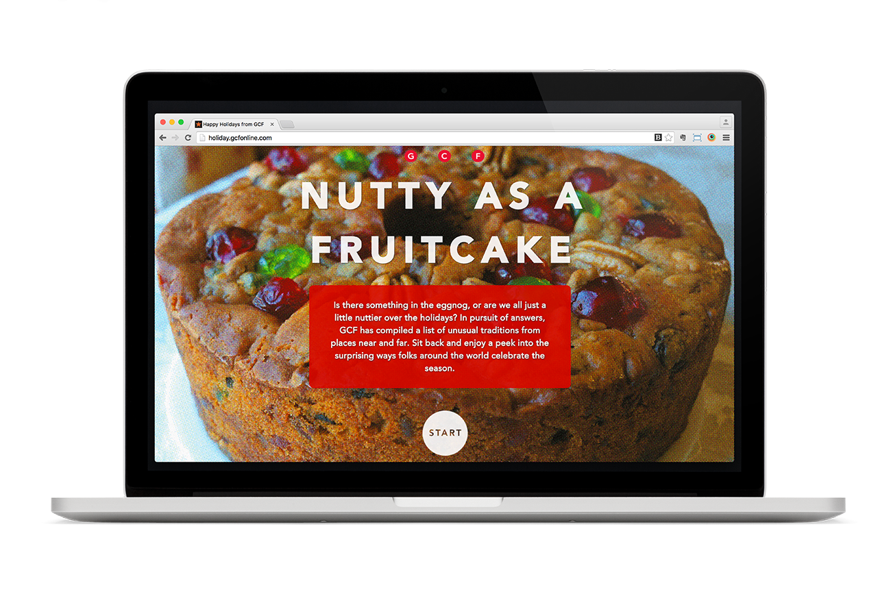 In order to promote that GCF offered capabilities for digital design we developed this single-page parallax scrolling site. The microsite features photography and information about unique holiday traditions from around the world. This was the first digital holiday greeting the company produced.