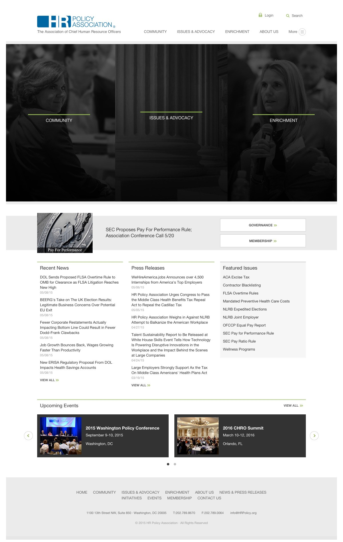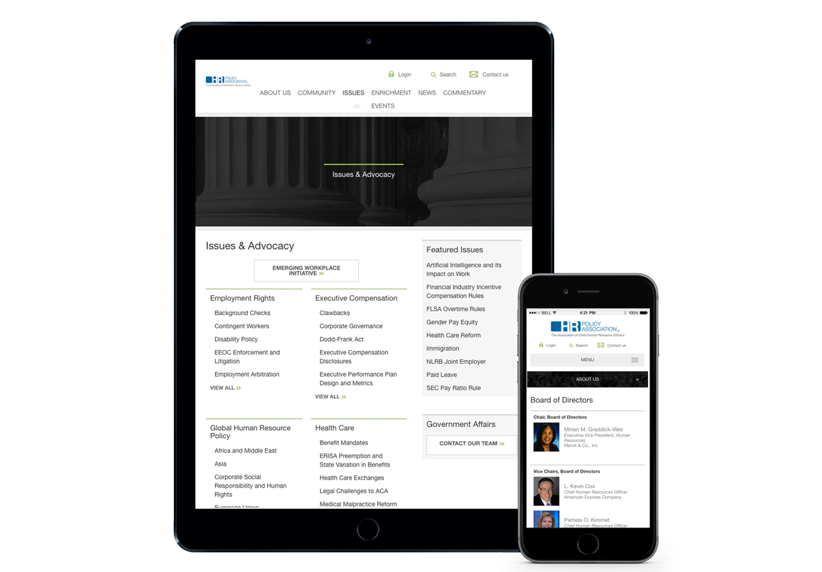 The HR Policy Association is the top public policy organization for chief human resource officers of the largest employers in the United States. I was tasked with designing a website that would serve as a clearinghouse for the association’s news, events, press releases, and events.