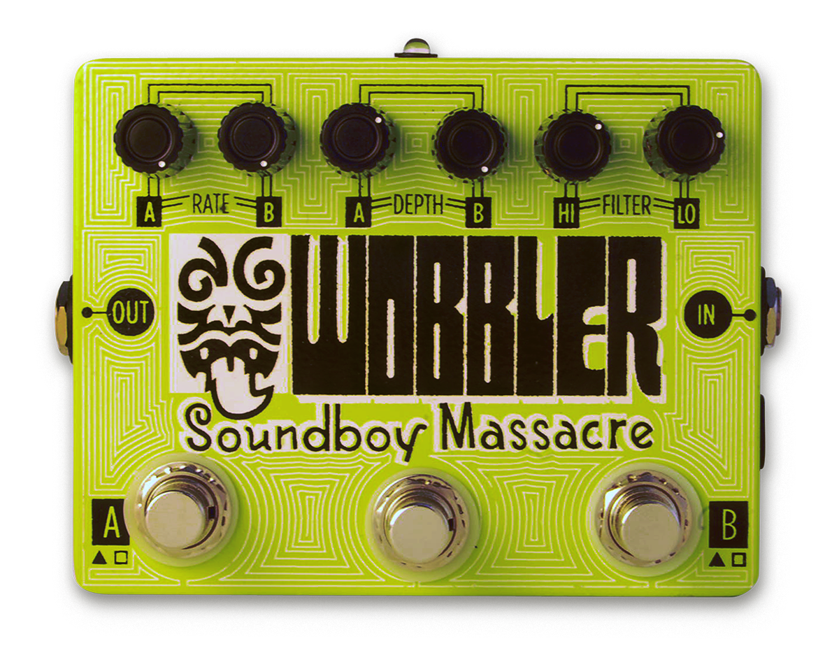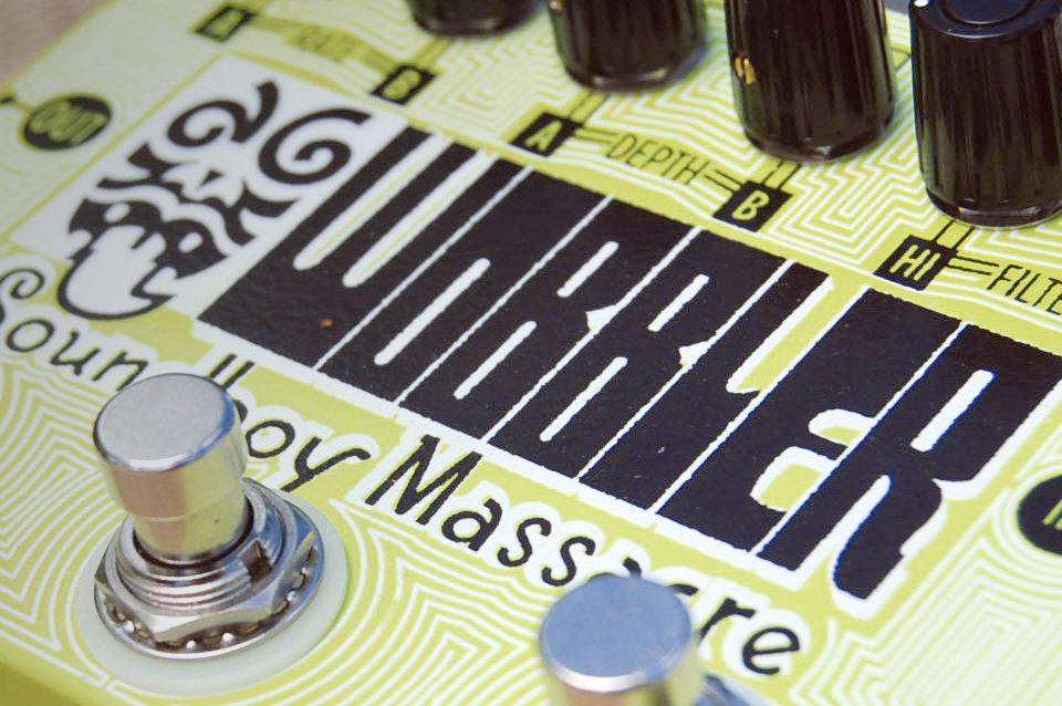 Distressed lettering was created for the face of Soundboy Massacare’s Wobbler guitar pedal. The pedals were silk screen printed in a limited edition.